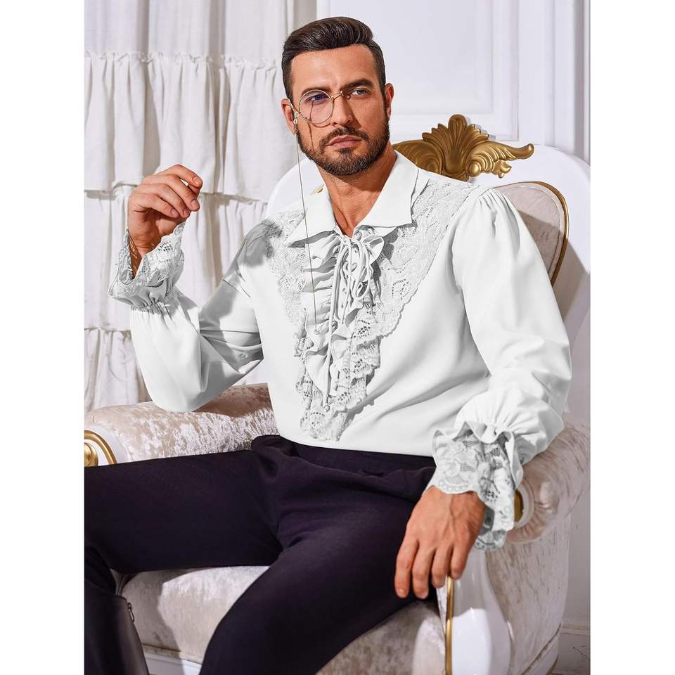 2025 hombres Steampunk gótico Medieval pirata camisa renacentista victoriano vampiro poeta encaje trajes gabardina componentes
