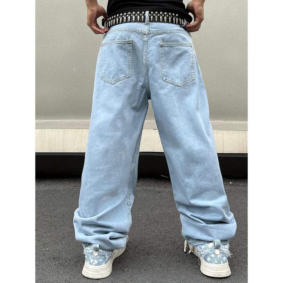 2025 pantalones vaqueros holgados lavados a la piedra para hombre, pantalones vaqueros ajustados de retazos con flores y bordados de margaritas, pantalones vaqueros patinadores de pierna ancha, técnica de pulverización, Hip Hop