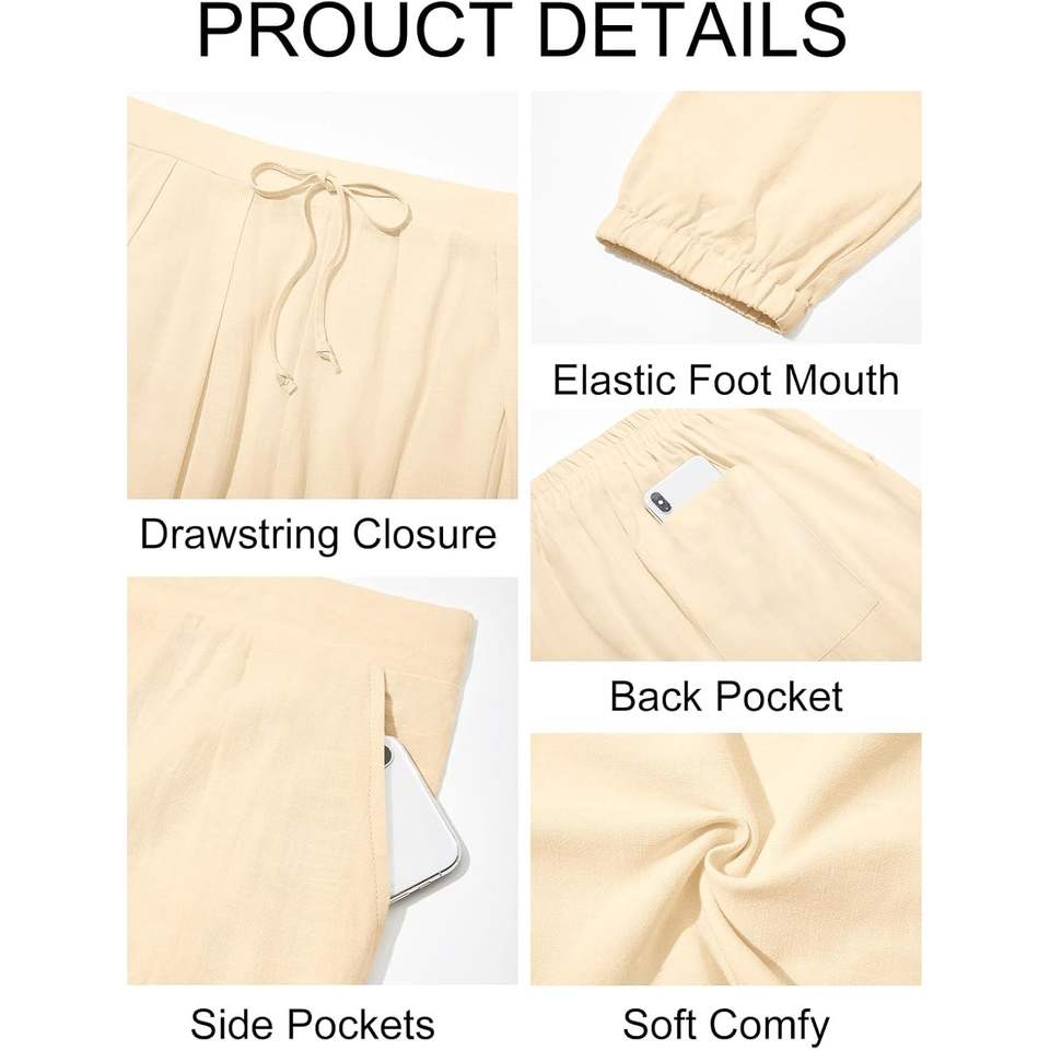 2025 pantalones casuales XL para hombre elásticos de cintura media de lino con cordón plisado Joggers verano playa Yoga pantalones con ajuste suelto