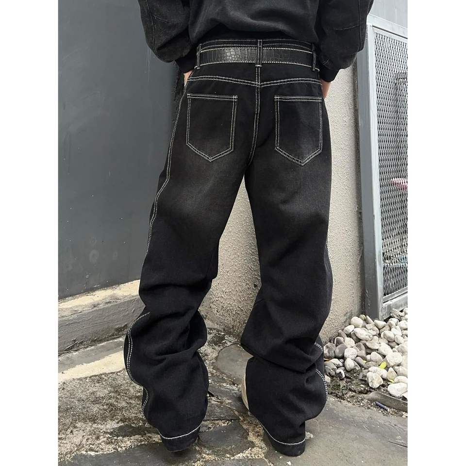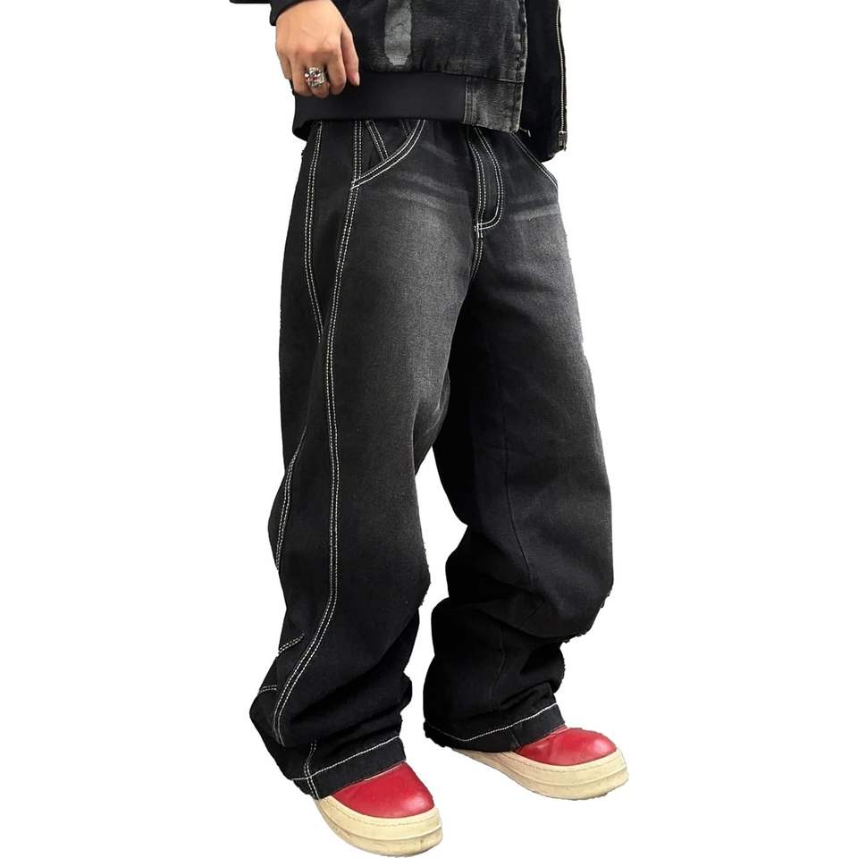2025 pantalones vaqueros holgados estilo Hip Hop Y2K para hombre, suturas irregulares y pantalones vaqueros de pierna ancha con bolsillo en ángulo