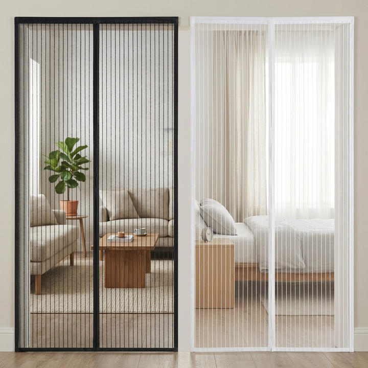 Mosquitera Magnética Moderna 2025 de Poliéster de Marco Completo con Agujeros de Malla Pequeños para Ventilación, Puerta con Pantalla para Dormitorio/Baño, Fácil Instalación