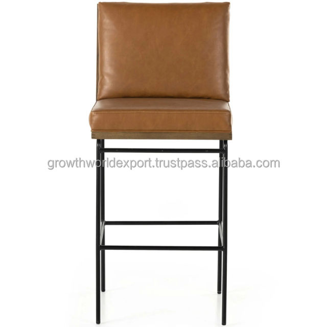 Nombre del producto:Silla de cuero de madera marrón con patas de hierro (Hierro y cuero Combo)