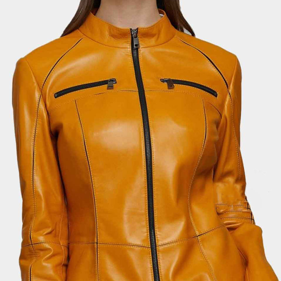 Chaqueta de piel auténtica de oveja para mujer, ropa informal de diseño personalizado, más vendida, con detalles de Moto y bolsillos delanteros con cremallera, 2025
