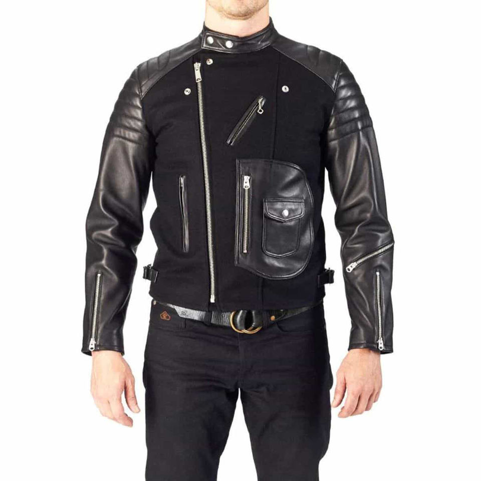 2025 más vendido nuevo diseño personalizado estilo motorista hombres negro Denim y cuero estilo Club chaqueta acolchado diseño acolchado