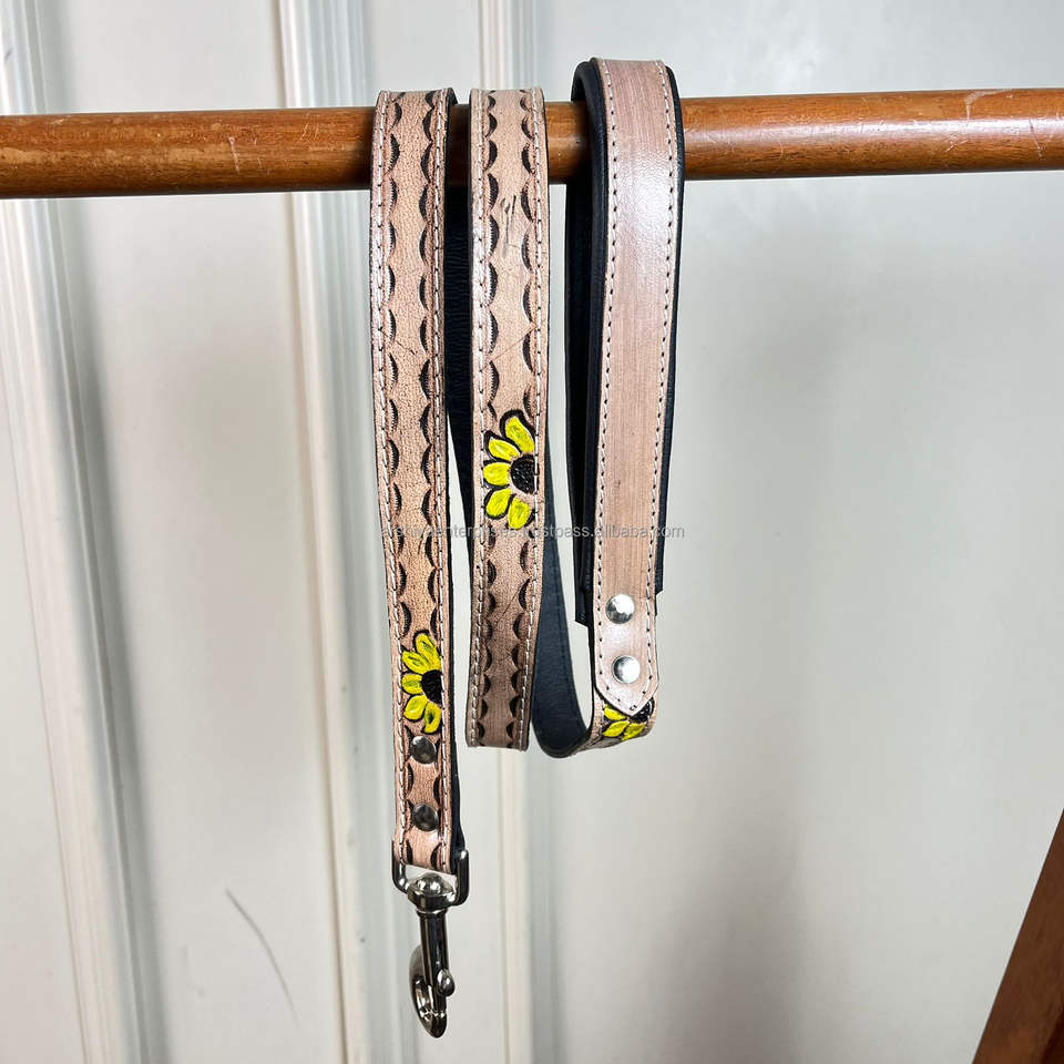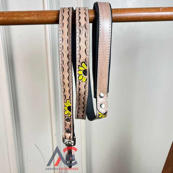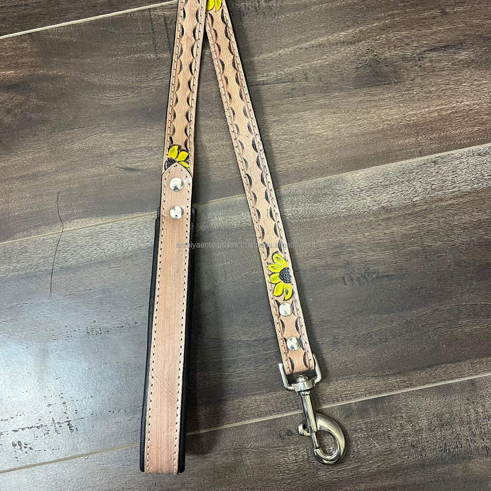 Hand Tooled Leather Floral Design Pet Leash