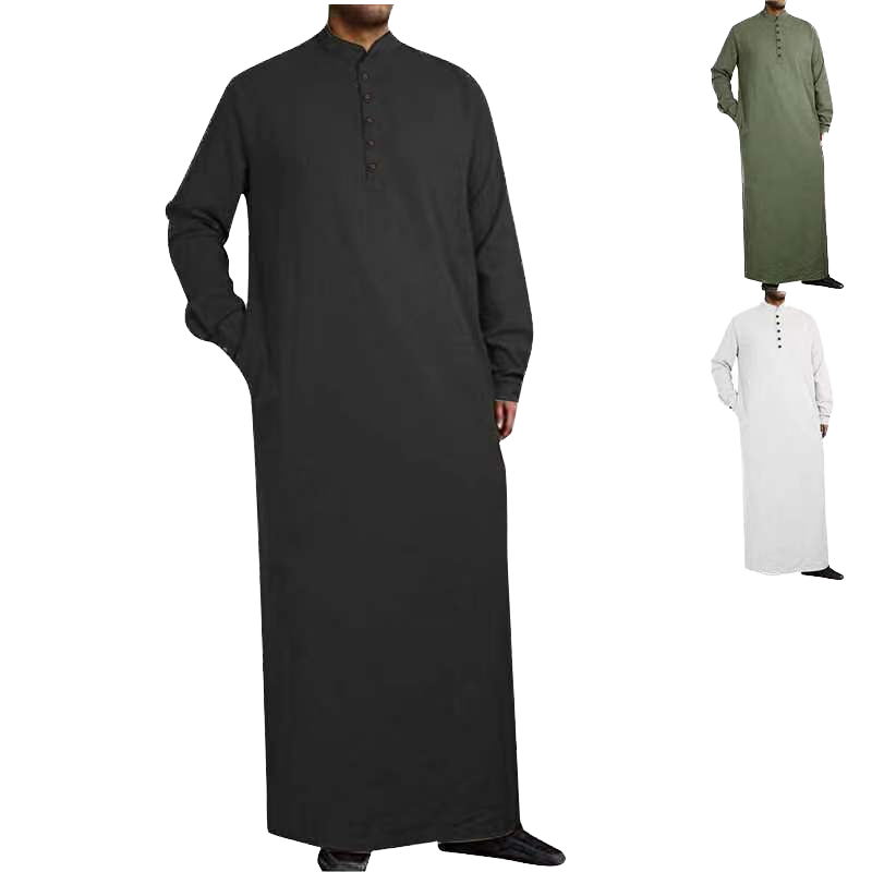 Túnica Musulmana para Hombre 2025, Abaya de Algodón, Manga Larga, Color Sólido, Estilo Islámico Informal, Camisa Tipo Túnica, Ropa Árabe de Dubái