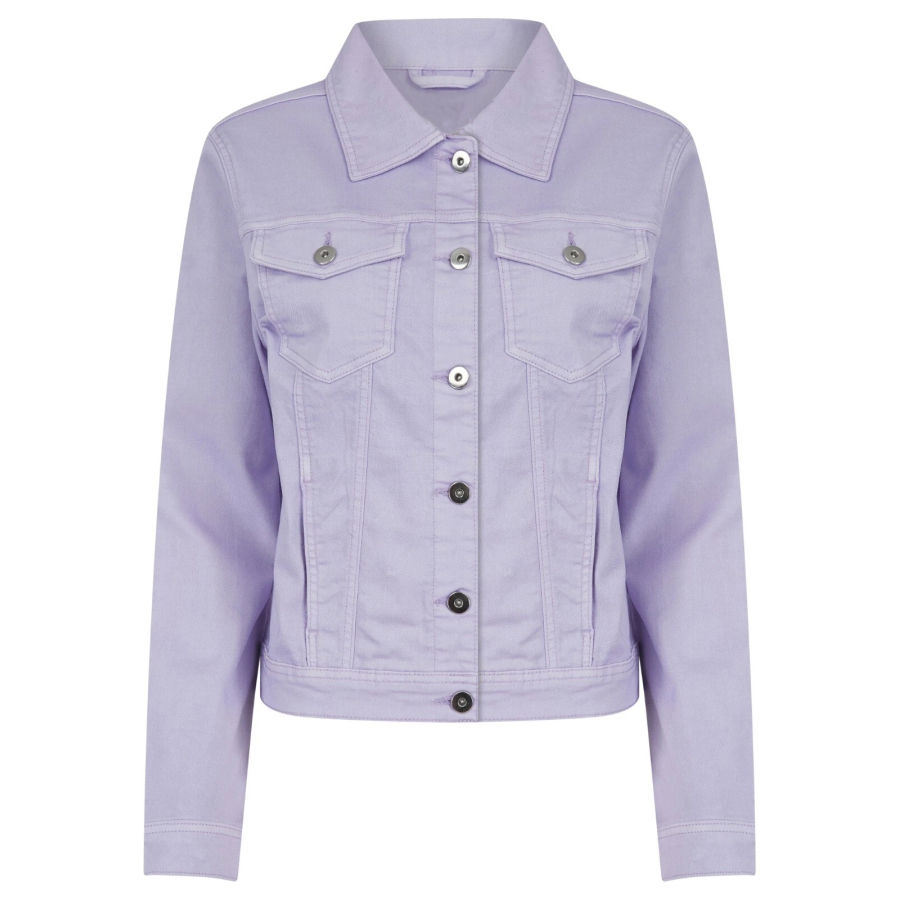 2025 nuevo 100% algodón de alta calidad púrpura Color brillante abrigo de moda para mujer chaqueta vaquera elástica de verano de algodón suave
