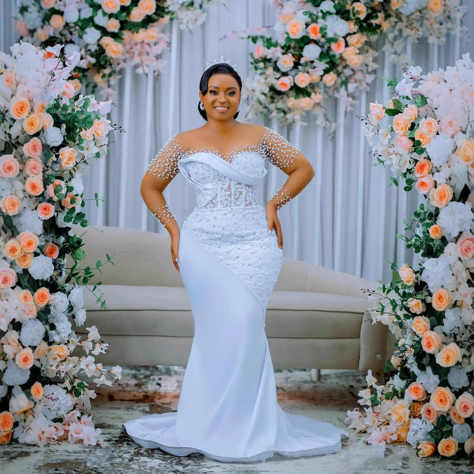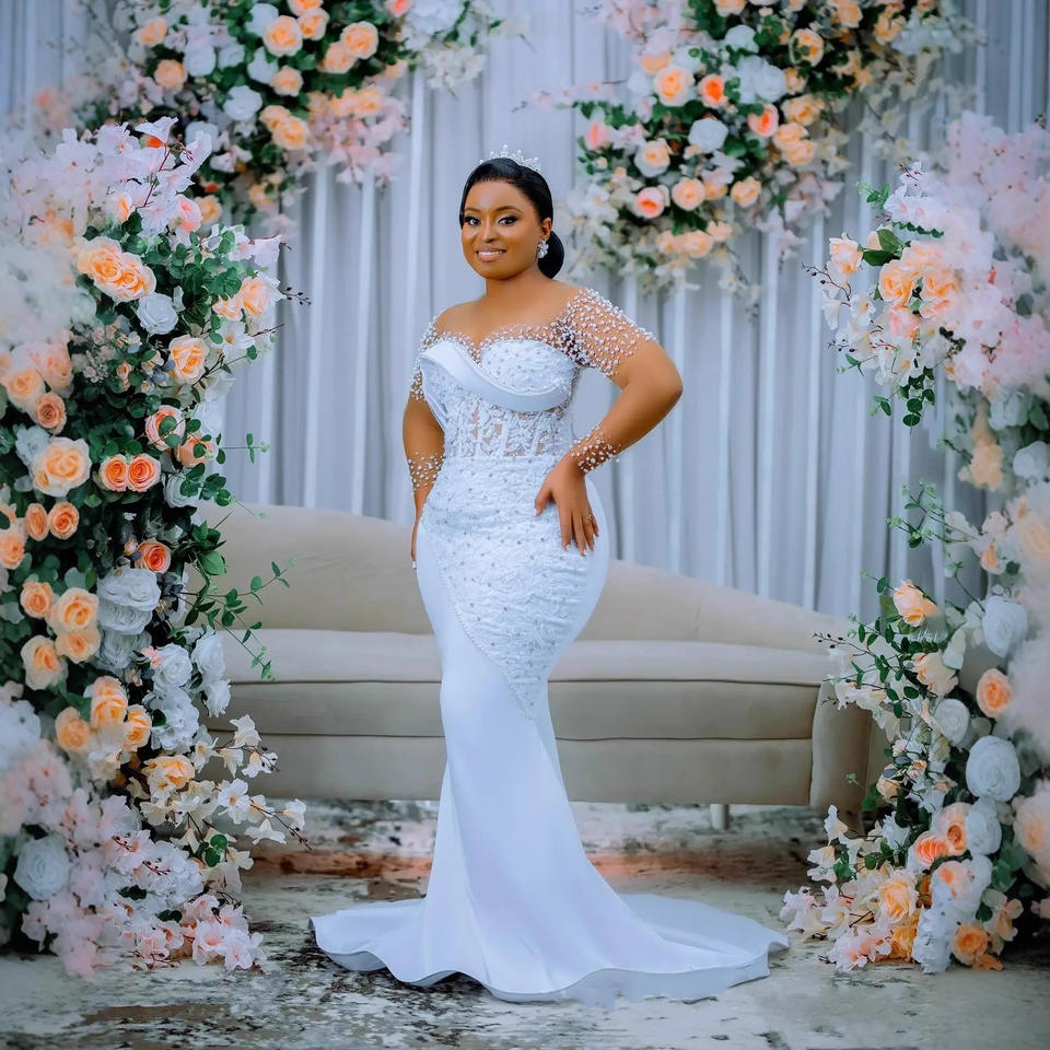 Nuevo Vestido de Novia 2025, Antiestático, Hombros Descubiertos, Escote Redondo, Talla Grande, Elegante y Estilizador, con Cola para Boda