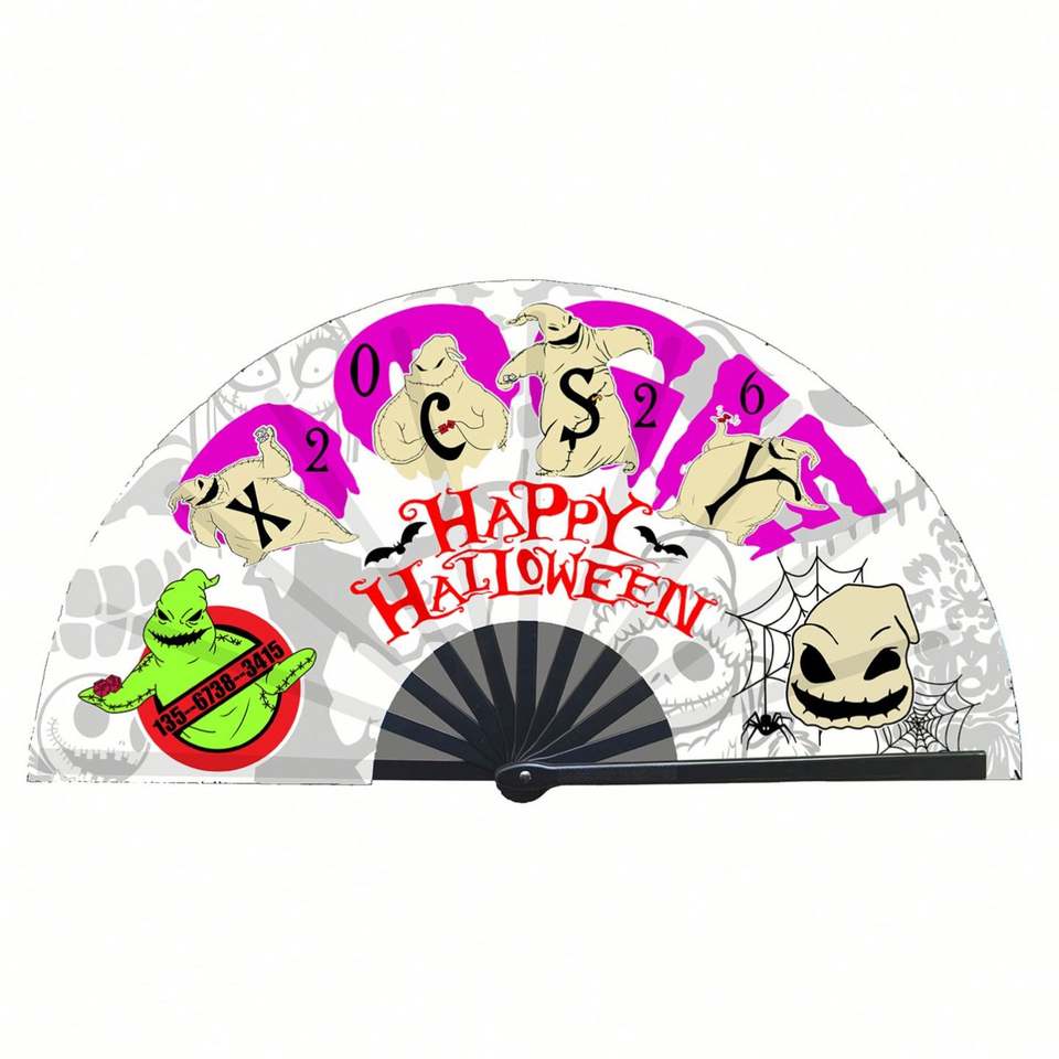Abanicos de Bambú Grandes Personalizados con Decoración de Halloween y Diseño Impreso, Novedad 2025
