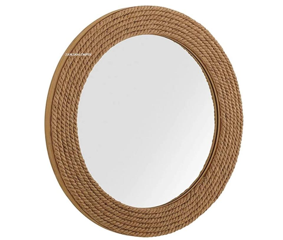 Espejo de pared de cuerda redonda costera náutica espejo decorativo colgante con marco de yute para casa de playa, baño, decoración para sala de estar
