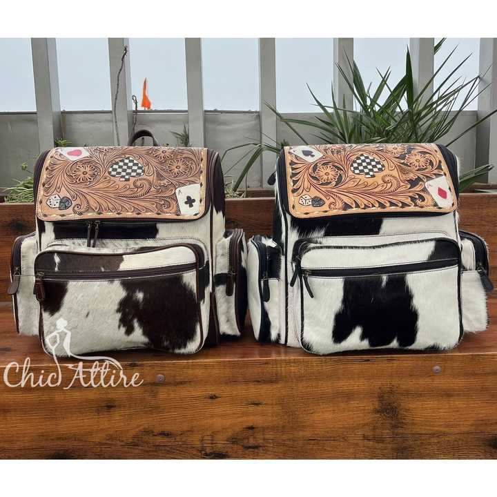 Product name:Tooled Cowhide Checkered Backpack for Women & Men