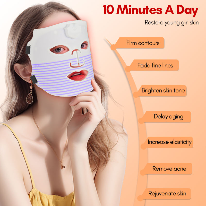 2025 nueva llegada tendencia uso doméstico equipo de belleza silicona 7 en 1 máscara Facial LED terapia de luz roja para el cuidado de la piel