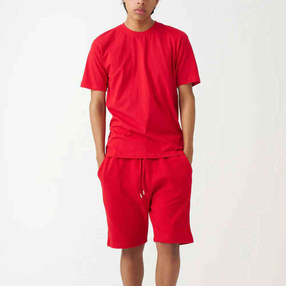 2025 nuevas llegadas conjunto corto de verano Casual personalizado hombres 2 piezas camiseta pantalones cortos conjunto algodón hecho Color rojo cuello redondo manga corta