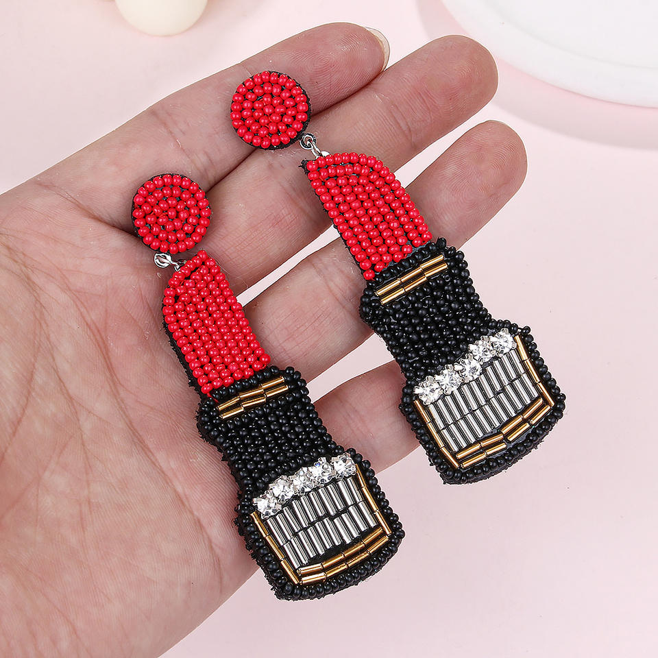 2025 nuevos pendientes de cuentas de arroz de lápiz labial creativo bohemio pendientes de joyería tejidos a mano regalo de San Valentín listo para enviar