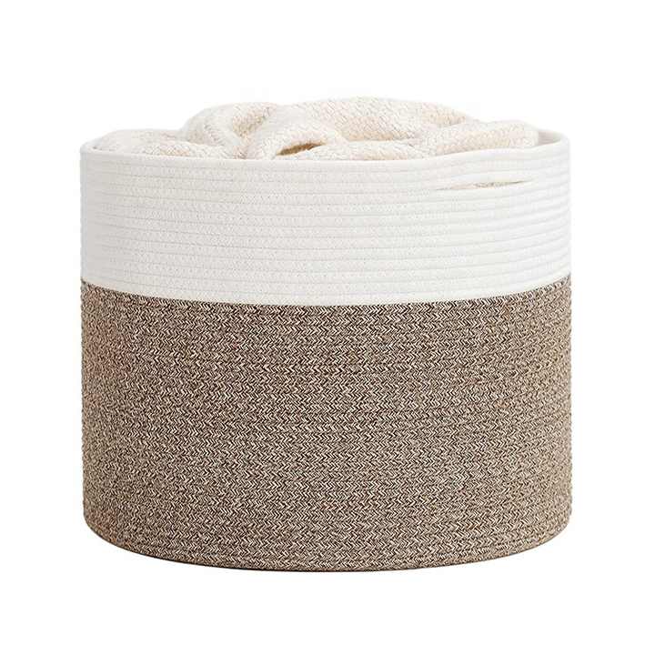 Cesto de almacenamiento de cesta tejida de cuerda de algodón grande marrón nuevo 2025 para ropa sucia