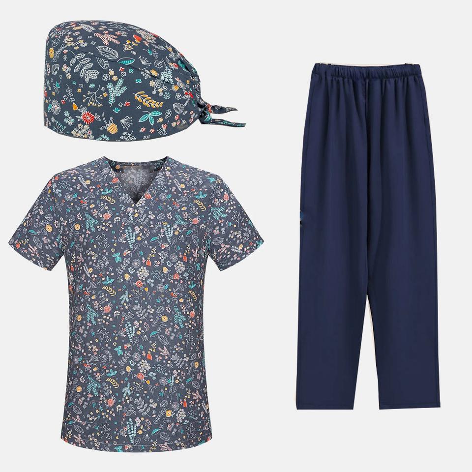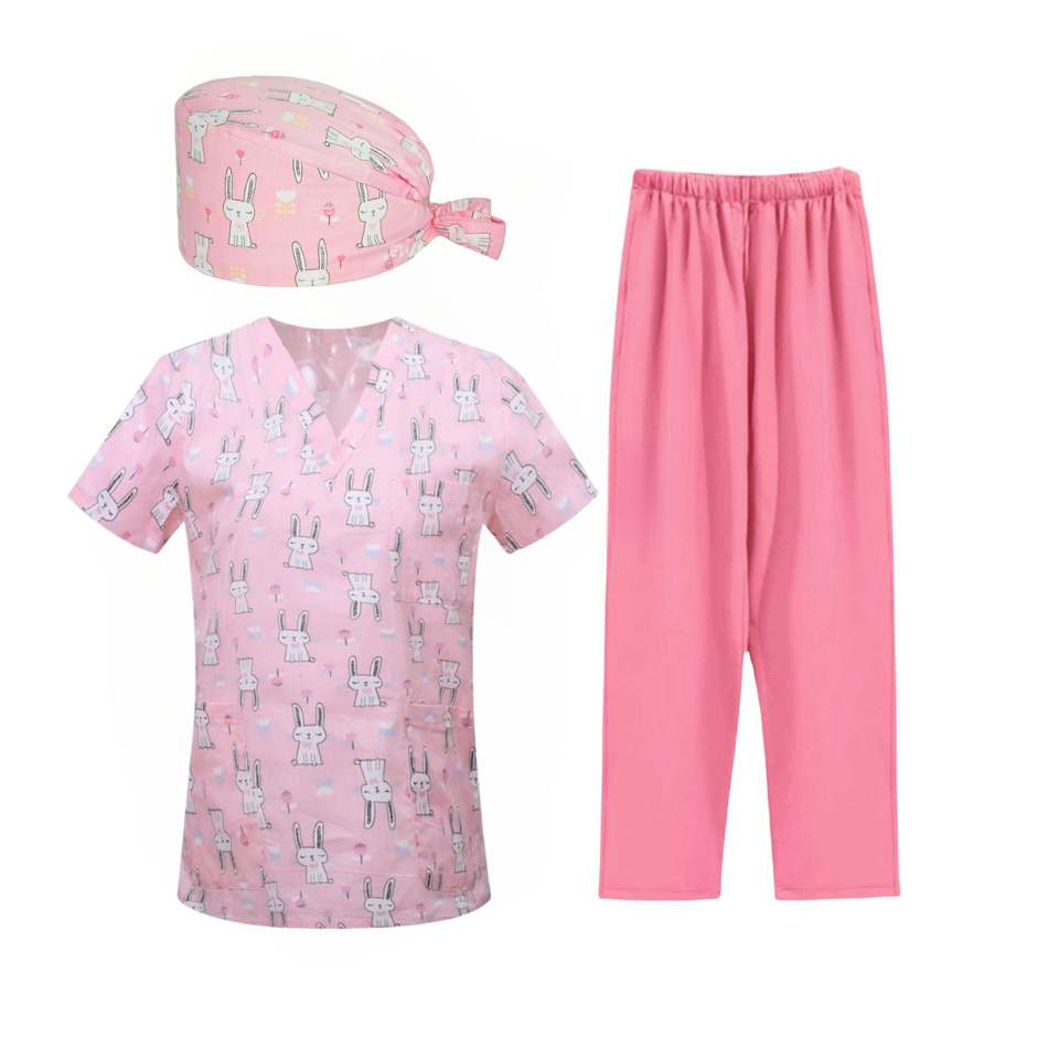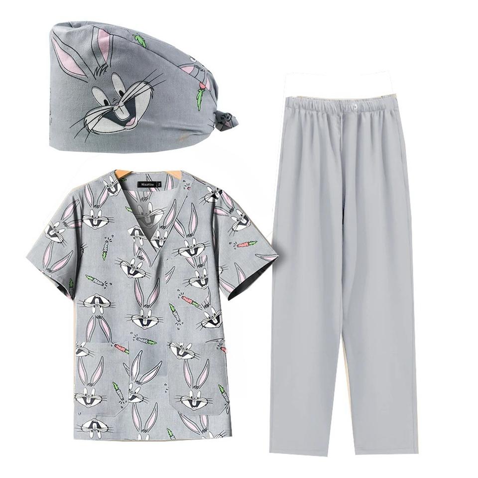 Conjunto de Uniformes Médicos Unisex con Estampado de Conejo de Dibujos Animados 2025, Uniformes de Hospital, Gorro Quirúrgico, Ropa de Trabajo para Enfermeras, Poliéster y Spandex