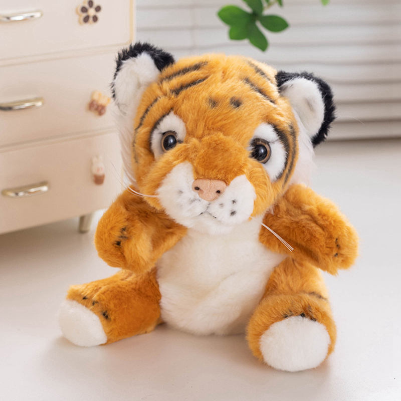 Nuevo títere de mano de tigre personalizado 2025 para niños, de felpa supersuave, para aliviar el estrés, en postura de pie y sentado