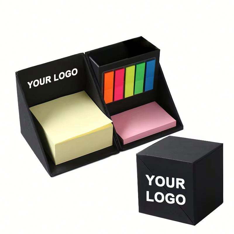Juego de Bloc de Notas Adhesivas en Forma de Cubo con Soporte para Bolígrafo, Diseño Personalizado 2025, Impresión de Logotipo con Caja, Promoción