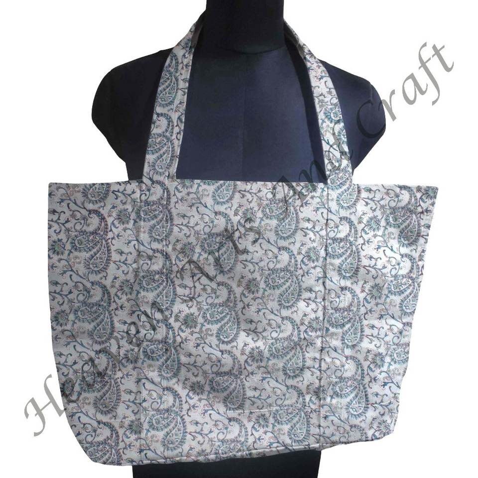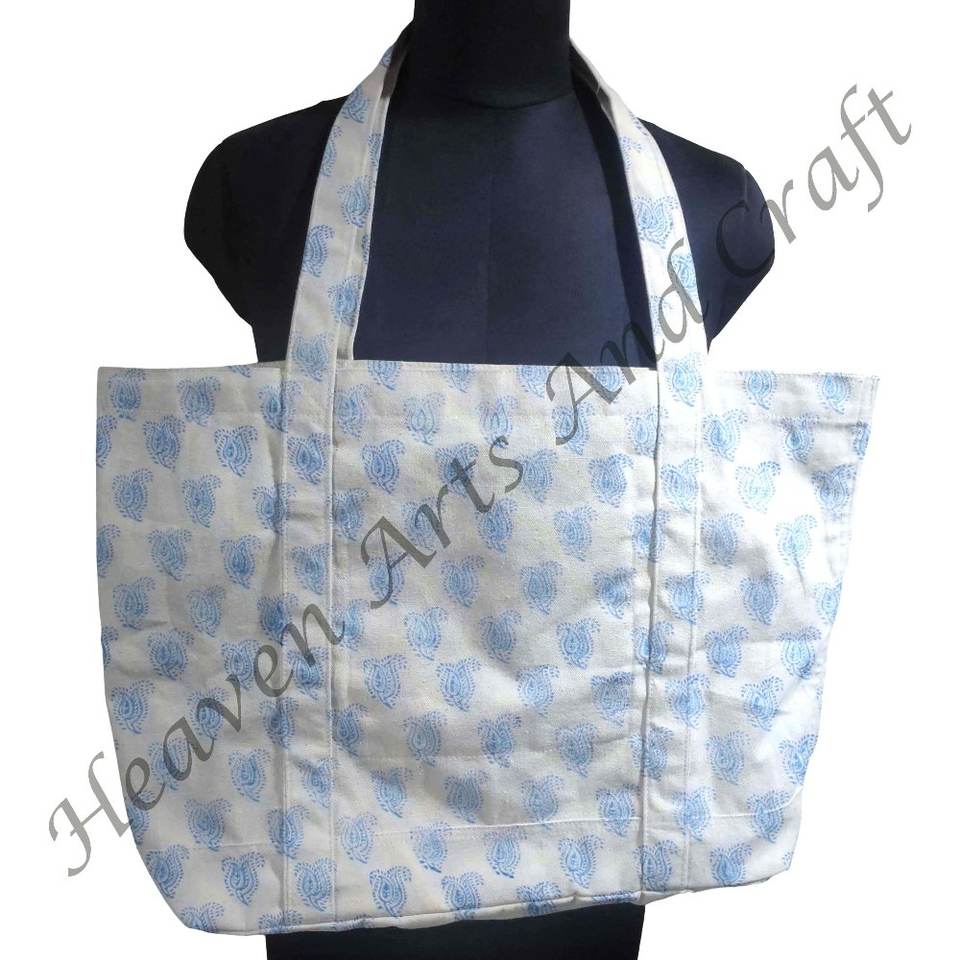 2025 nueva bolsa de compras de lona de algodón con estampado de bloque completo personalizado con 2 asas patrón bolsa de playa