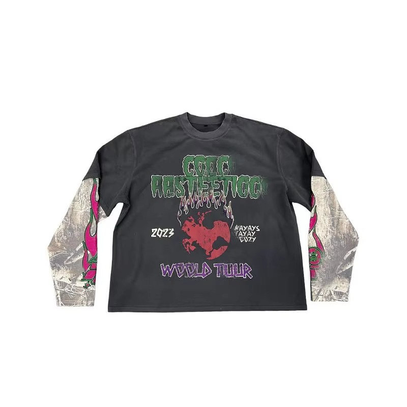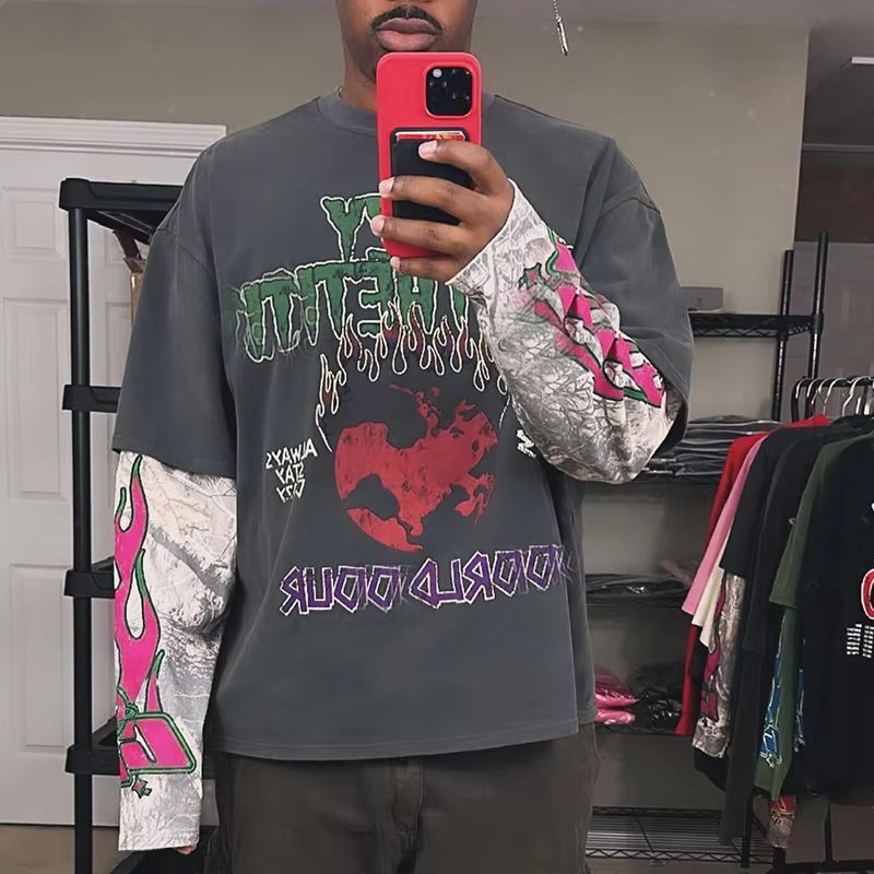2025 Nueva camiseta personalizada con gráfico sólido serigrafiado de gran tamaño para hombre de doble capa de manga completa 180 gramos de peso pesado de algodón Boxy