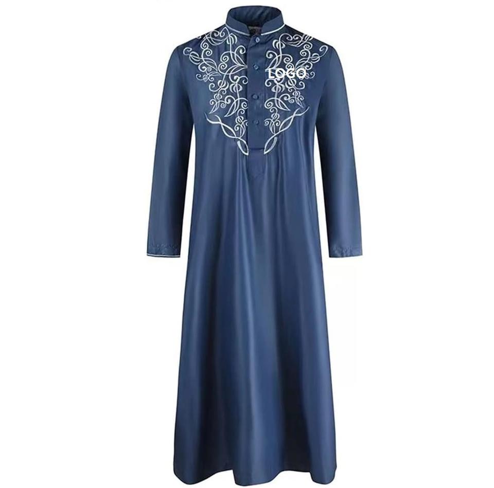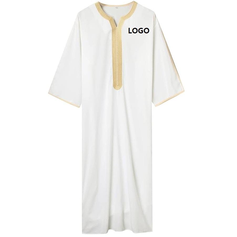 2025 nuevo diseño personalizado hombres Thobe vestido al por mayor sólido teñido oraciones diarias Thobes transpirable ropa musulmana tradicional