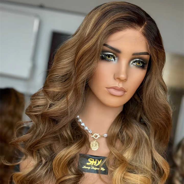 2025 nuevo diseño sin pegamento nudo Invisible Balayage Color cuerpo onda pelo crudo pelucas delanteras de encaje para mujeres blancas