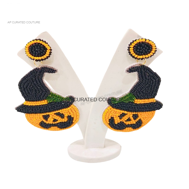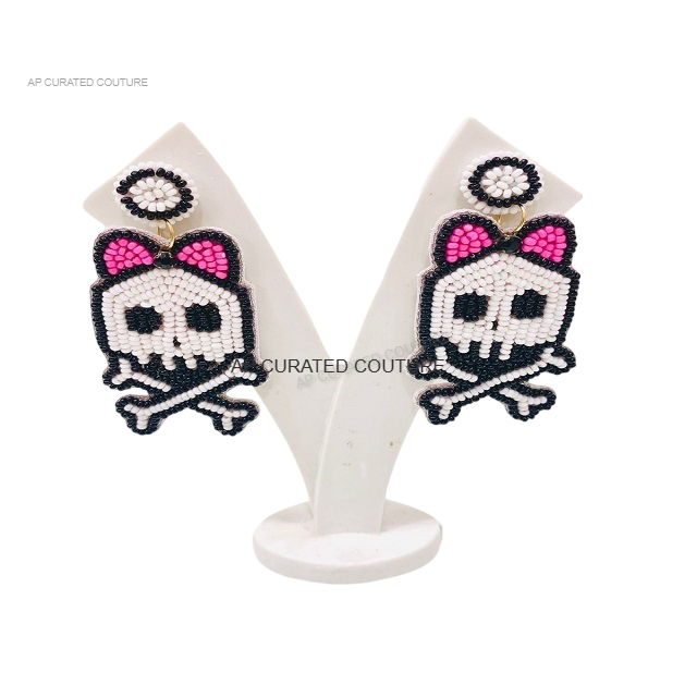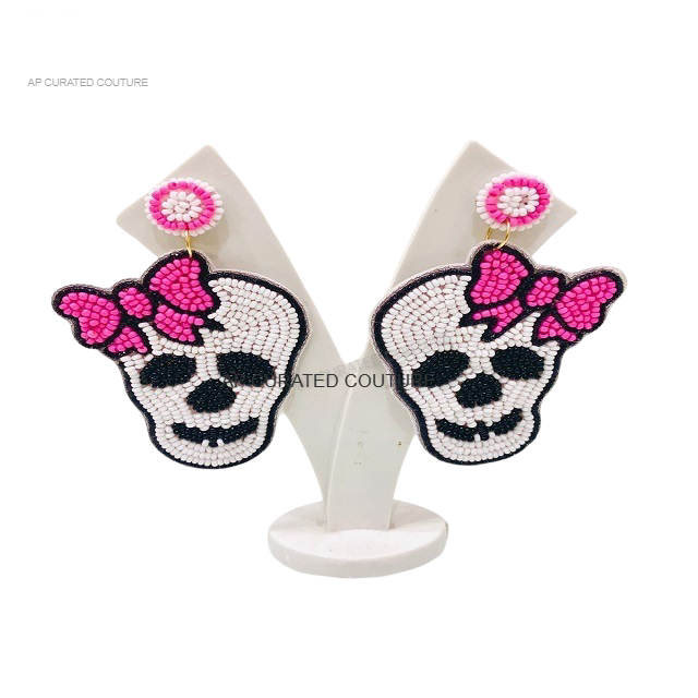 2025 nuevo diseño chapado en oro cuentas de arroz calavera fantasma pendientes hechos a mano Halloween colgante para mujeres accesorios de moda