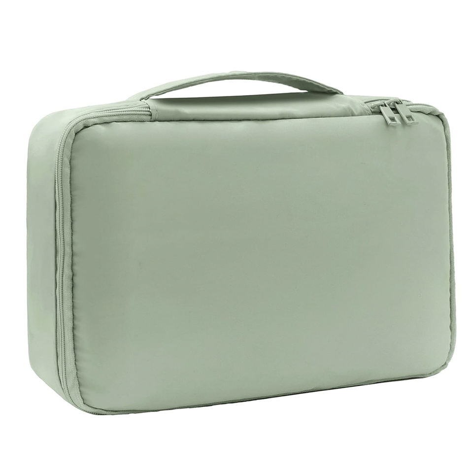 Bolsa de cosméticos de gran capacidad de Color verde de nuevo diseño 2025, la mejor opción, estuche de maquillaje multifuncional de viaje, cierre de cremallera, piedra