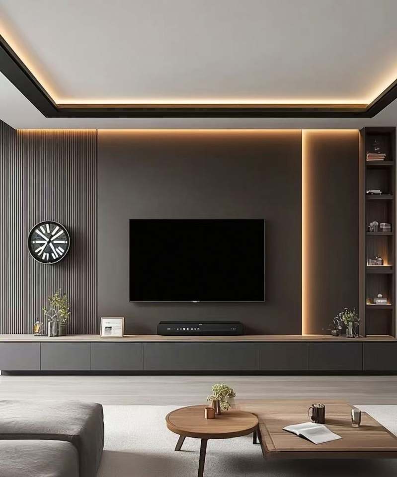2025 Nuevo diseño Gabinete de TV de lujo Gabinete de TV de pared completa Hecho en China Venta directa de fábrica personalizable