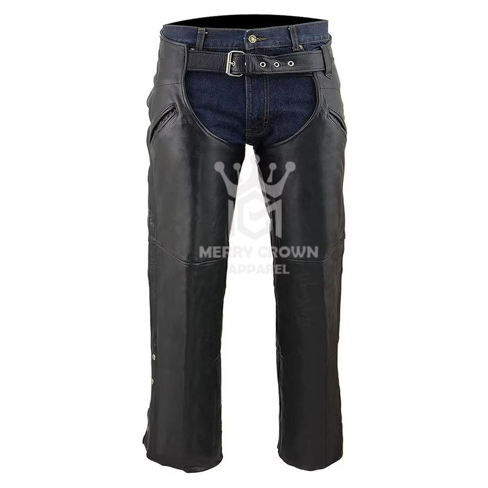 Chaps de cuero para hombre de nuevo diseño 2025 Chaps de cuero hechos en fábrica en fabricante de Chaps de cuero de color sólido