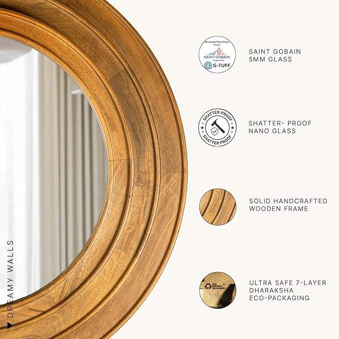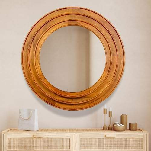 Espejo de Pared Redondo de Madera Moderno con Diseño Nuevo de 2025, Espejo de Pared Colgante Moderno a un Precio Razonable