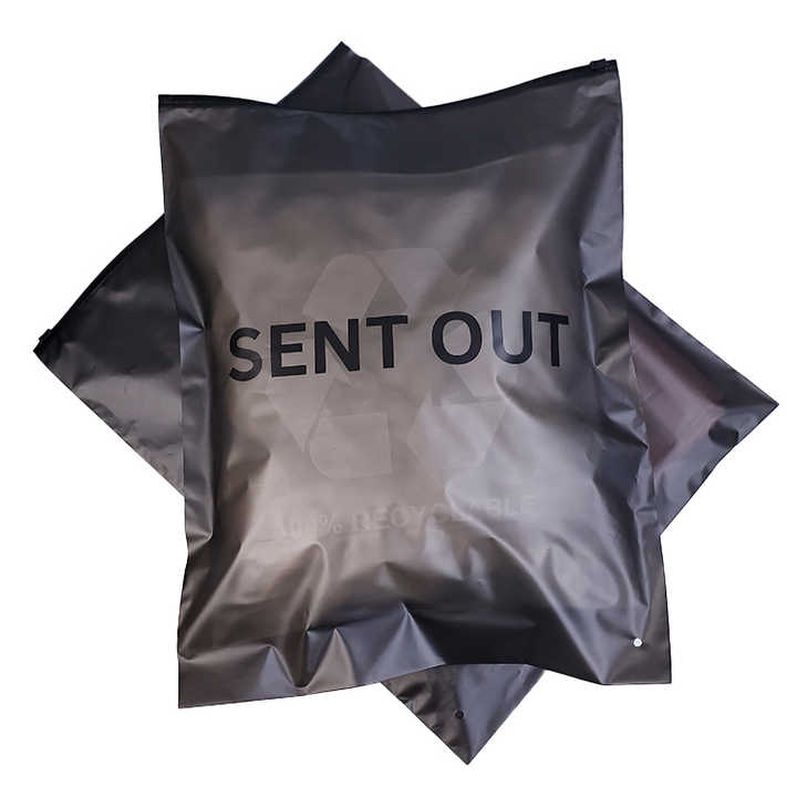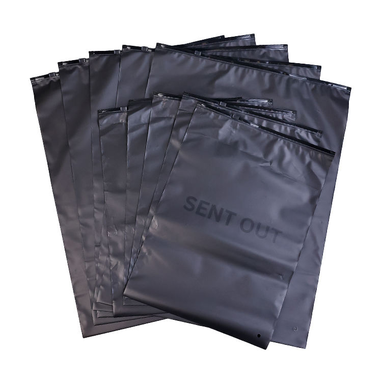 Bolsas de PVC/EVA con Cierre para Camisetas y Jeans, Diseño 2025, Reciclables, Personalizadas, Color Negro Mate Esmerilado, con Impresión de Serigrafía