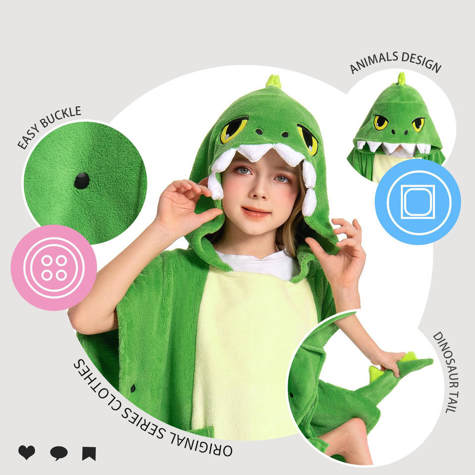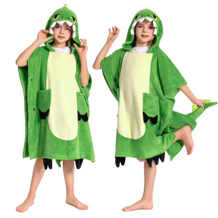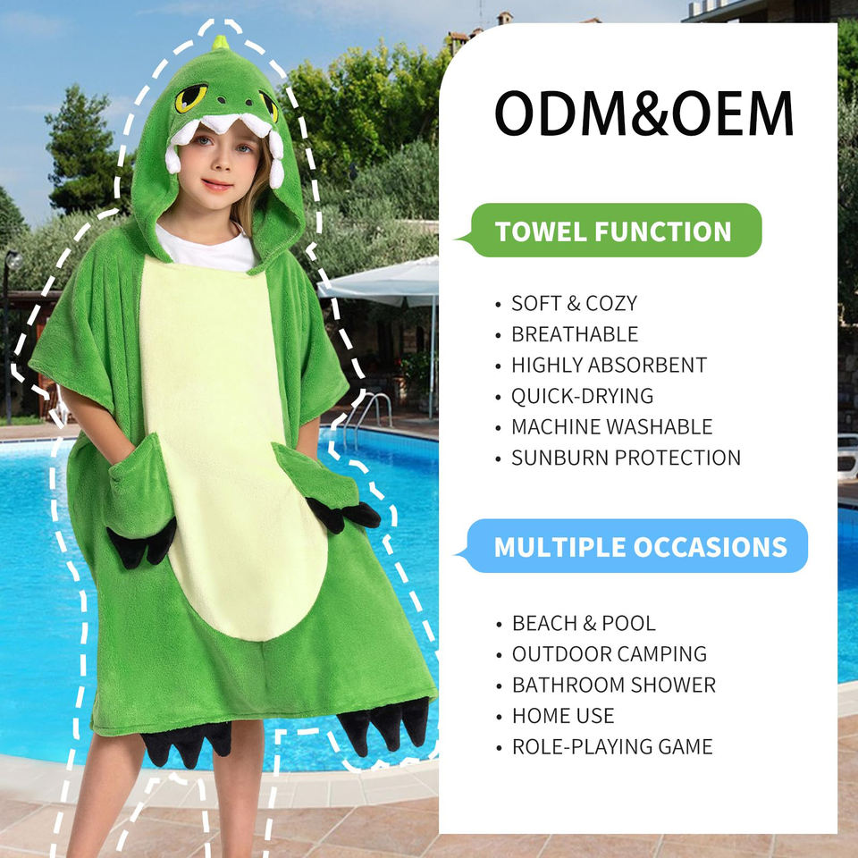 2025 nuevo diseño súper absorbente lindo dinosaurio niñas niños bata de microfibra piscina niños con capucha baño Toalla de playa