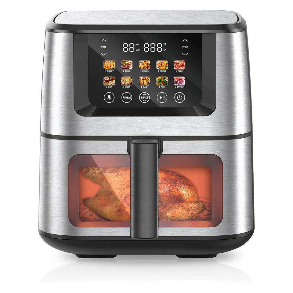 Control de termostato ajustable, Freidora por aire, Repostería, Cocinero, Contenedor de aceite desmontable, Operación fácil, Parrilla, Pantalla LCD, LED pantalla, Multi-función, Superficie de cocción antiadherente, Sin aceite, Protección contra sobrecalentamiento, Asado, Con luz indicadora, Con mirilla de observacion, Hornear, Deshidratador en UnoFunción