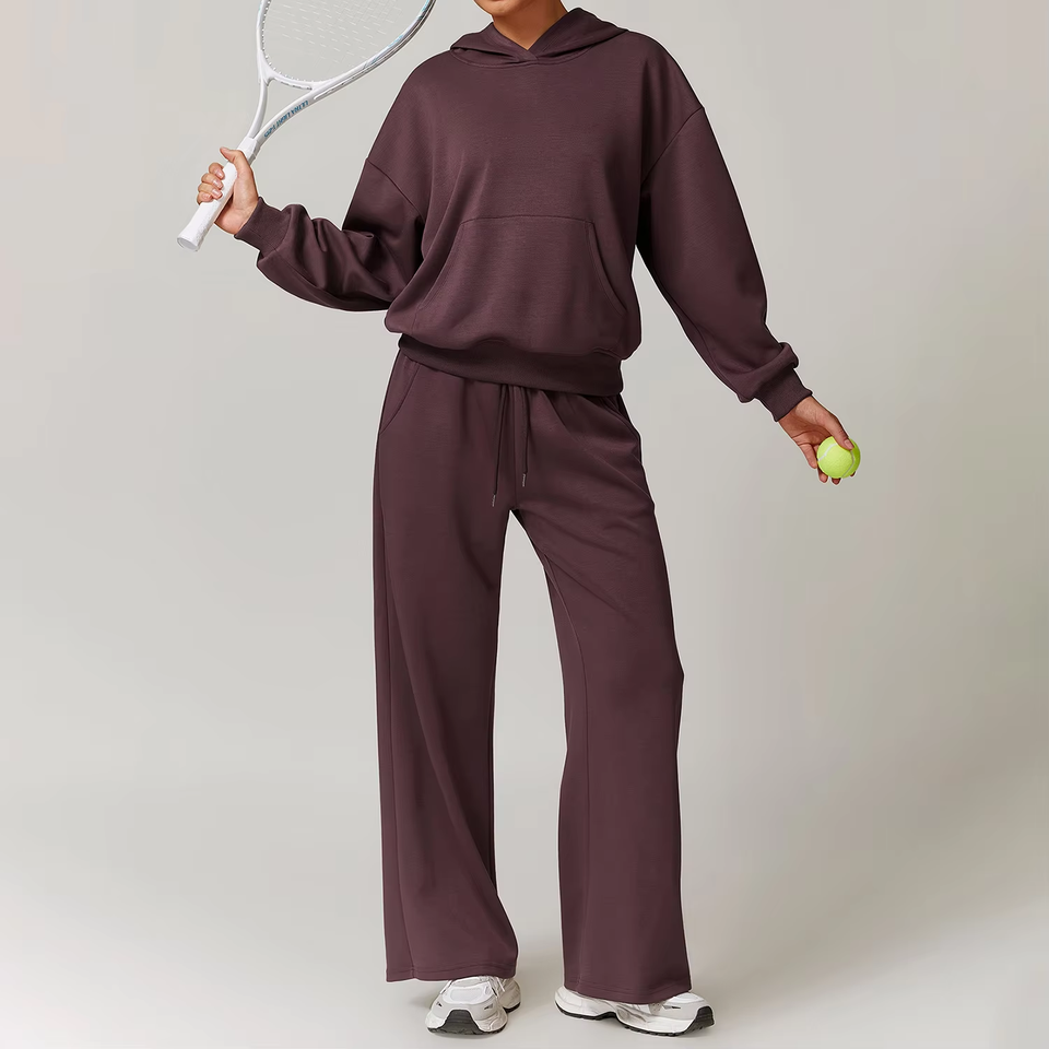 2025 nuevo Otoño Invierno cintura alta 2 piezas conjunto Joggers pantalones sudadera con pantalones de chándal Sudadera con capucha en blanco conjuntos de entrenamiento sueltos para mujeres