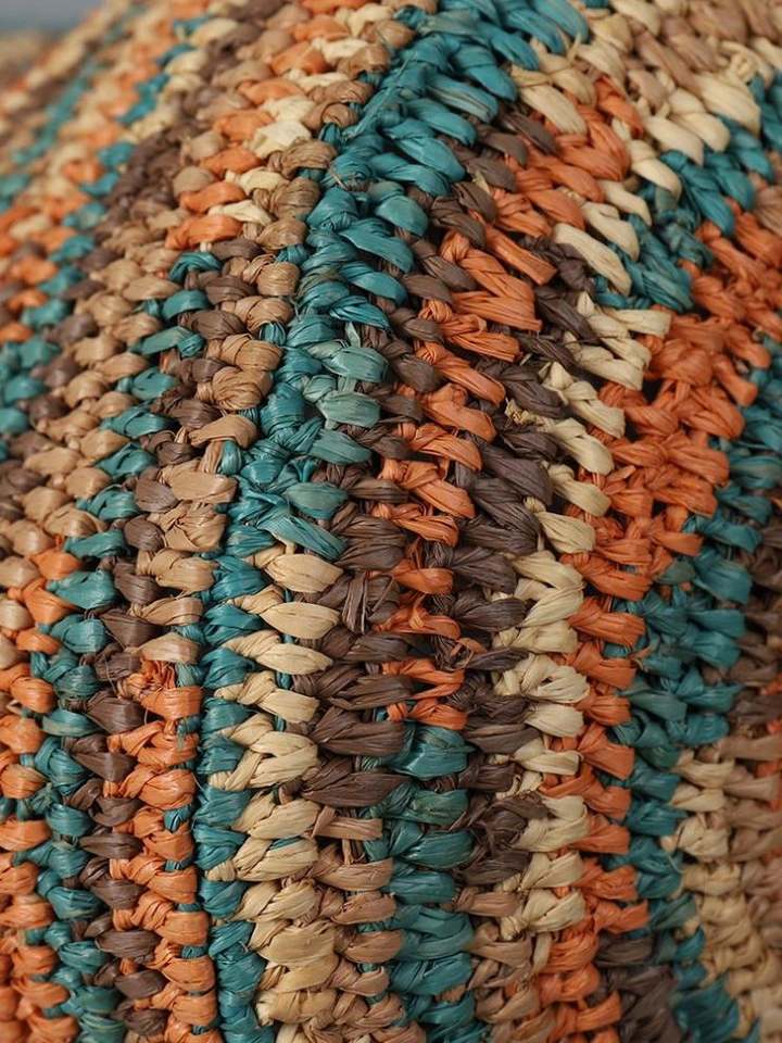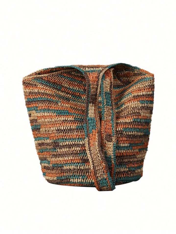 Bolso de Hombro de Rafia Tejido a Mano para Mujer, con Forro de Algodón y Patrón de Hilo, Estilo Playa, Moda Verano 2025
