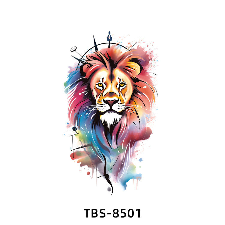 2025 nuevos tatuajes temporales de acuarela de moda realista azul Lobo Tigre León colorido tatuaje falso para Mujeres Hombres Adultos