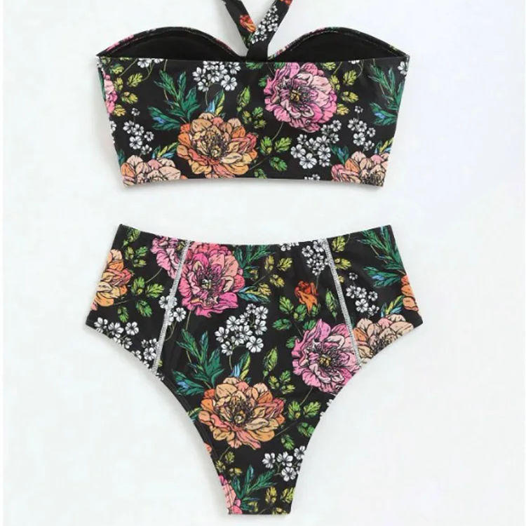 Product name:floral big ass high waist sleeveless Sexy halter swimwear
