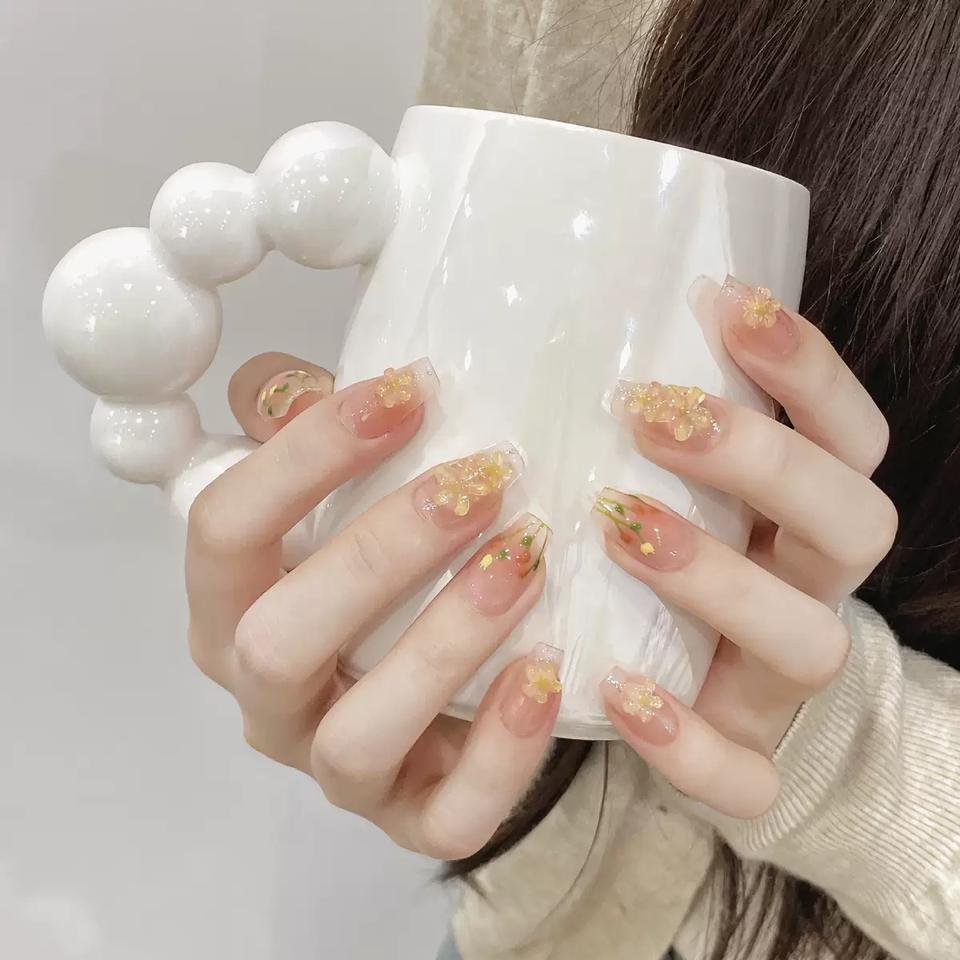 2025 nueva personalización de gama alta hecha a mano acrílico dibujos animados 3D flor almendra francés Nail Art prensa en las uñas