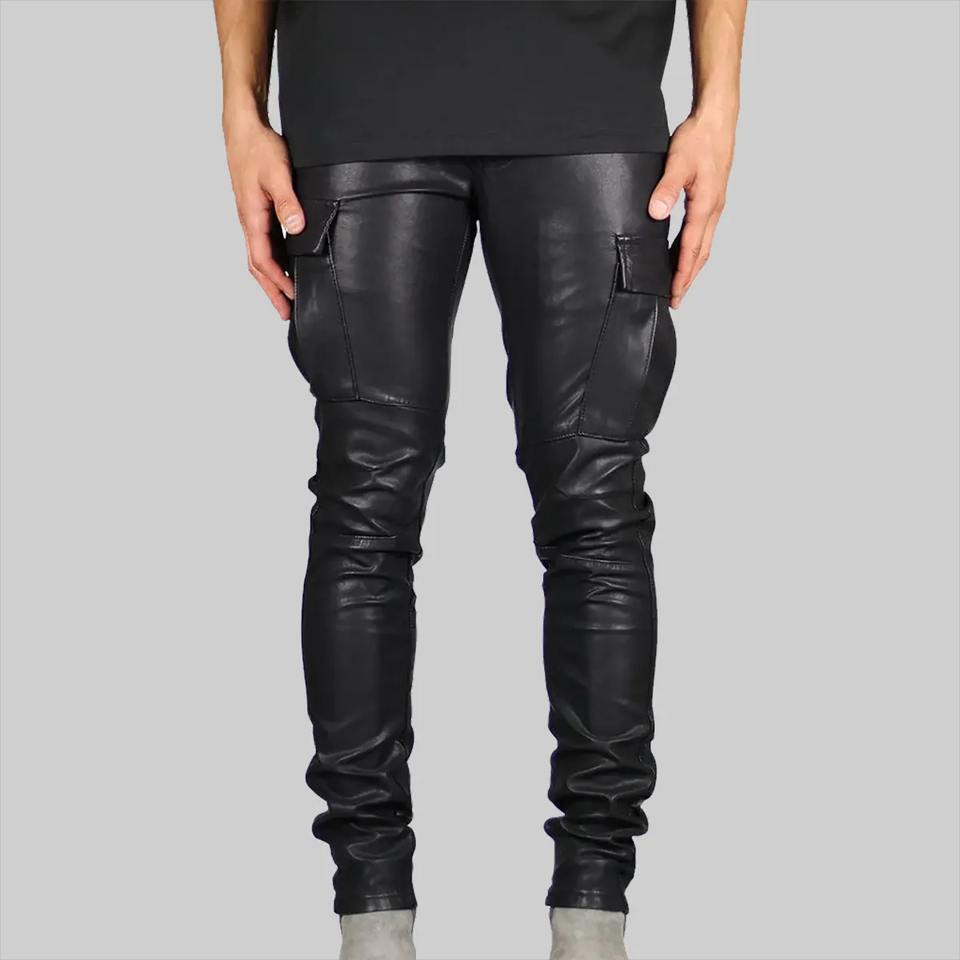 2025 nuevo último diseño cuero genuino hombres High Street Front Logo Jogger pantalones al por mayor Color personalizado y logotipo