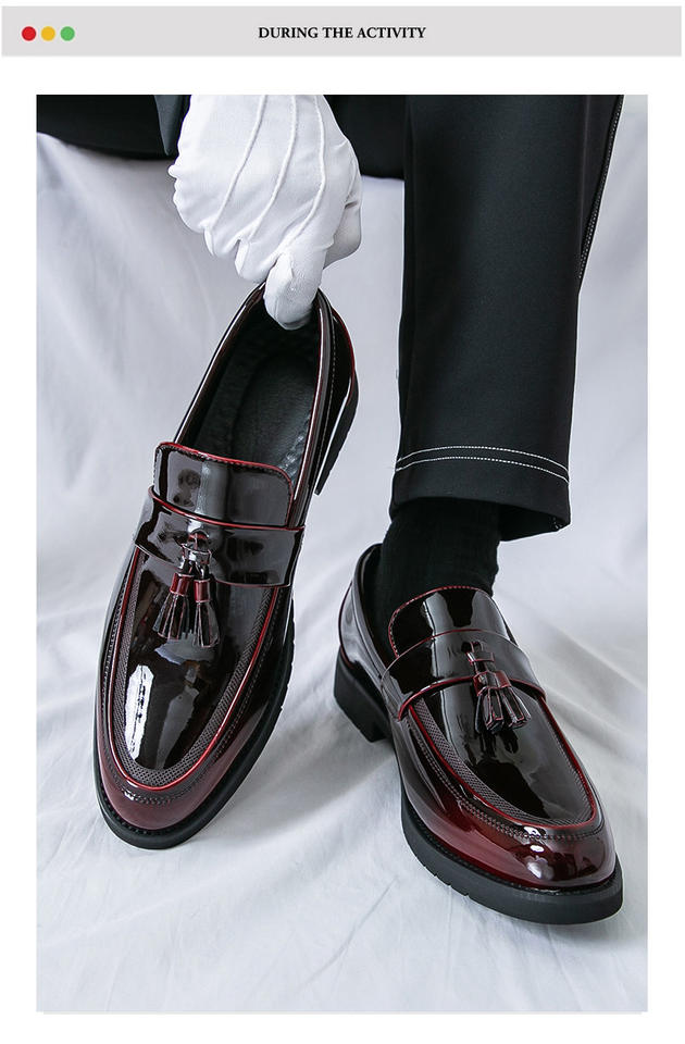 Zapatos de Cuero Casuales con Punta en Pico, Estilo Británico Moderno, Modelo 2025, Acabado Brillante, con Elevación Discreta, Zapatos de Cuero Modernos para Hombre