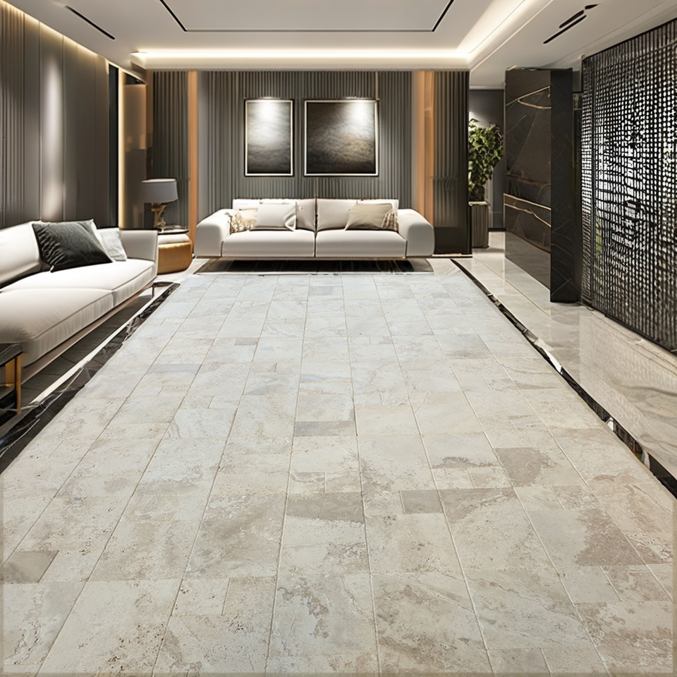 2025 nuevo modelo turco Navona Beige travertino piedra Natural baldosas de piedra de suelo de alta calidad hechas en Turquía para uso en la cocina