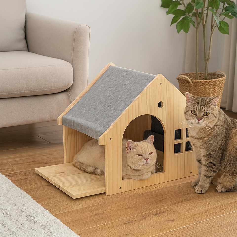 2025 nuevo producto casas y muebles para mascotas casas de madera personalizadas de madera maciza para interiores para fabricación de mascotas VIET NAM