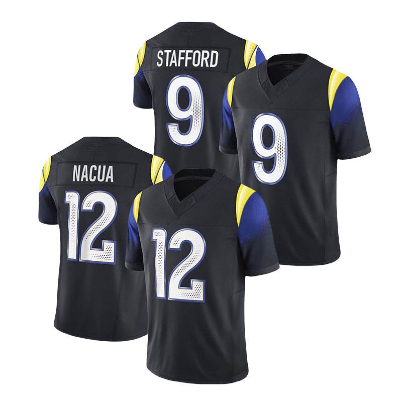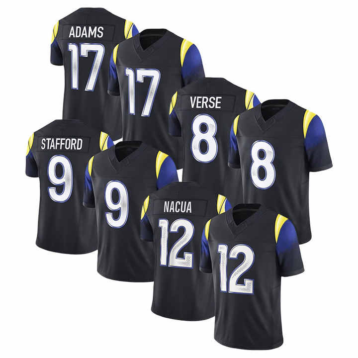 Camisetas de Fútbol Americano Bordadas con los Nuevos Rivalizaciones 2025, 17 Davante Adams, 12 Puka Nacua, 9 Matthew Stafford, 8 Jared Verse