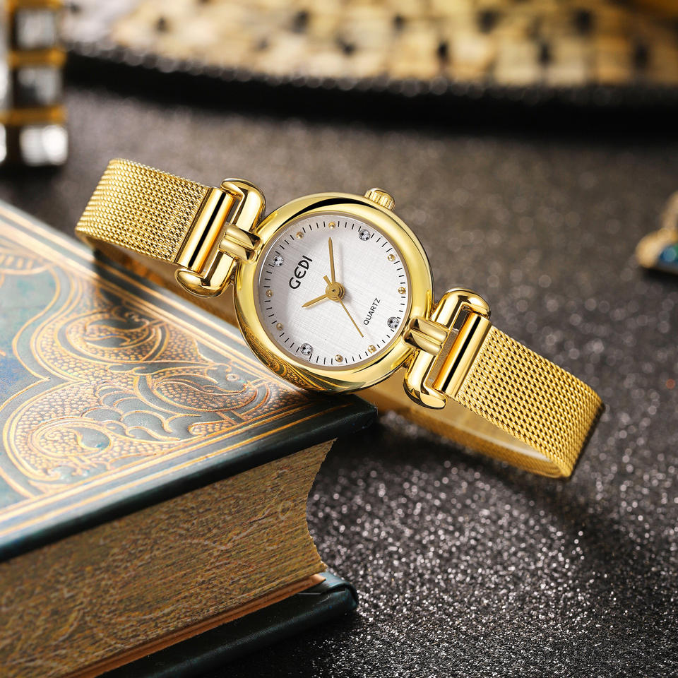2025 nuevo reloj de pulsera de cuarzo con correa de malla simple y elegante para mujer de oro pequeño