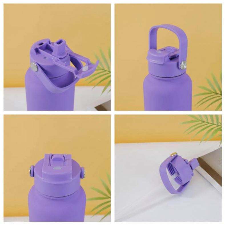 2025 nueva botella de agua de boca grande de acero inoxidable con mango portátil deportivo con tapa de paja