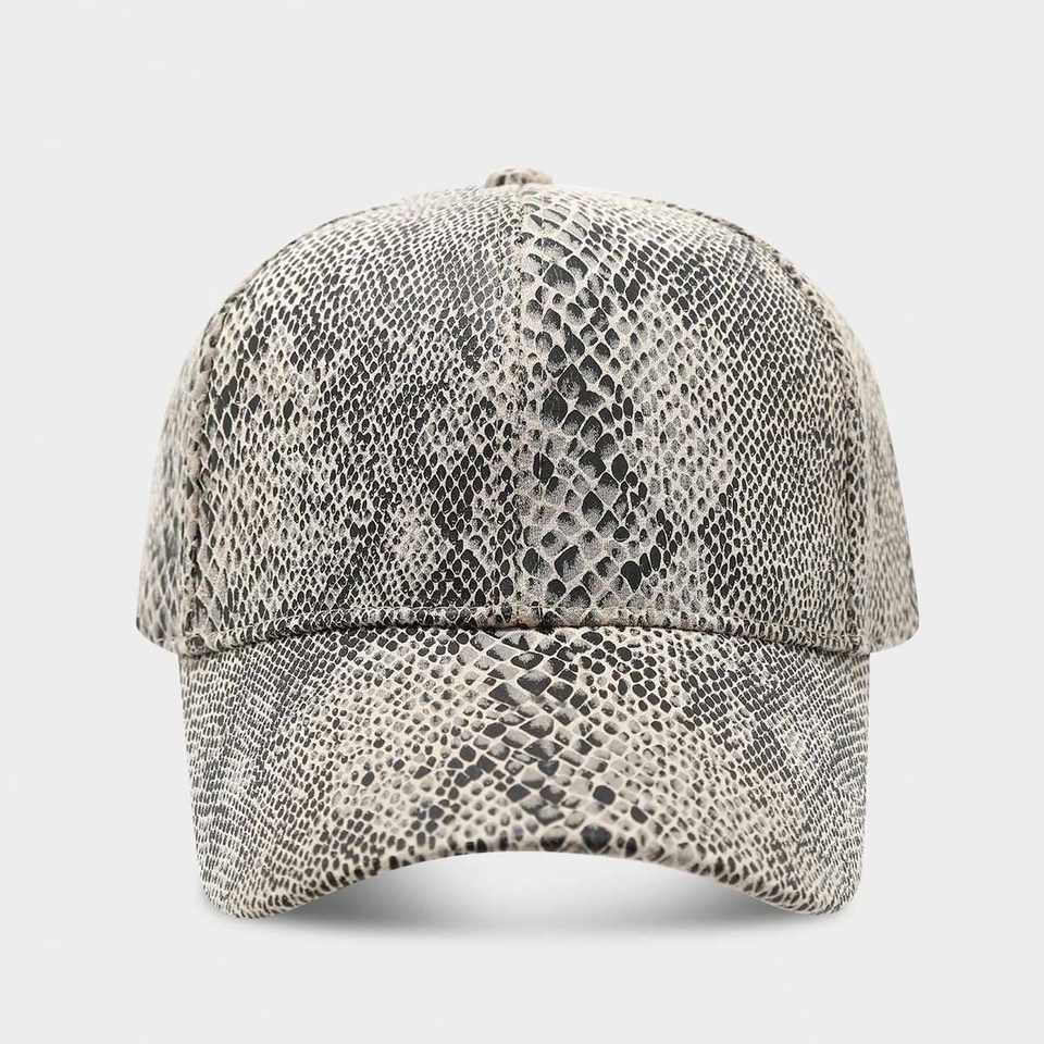 Gorra de Béisbol de Cuero PU Primavera-Verano 2025, Gorra de Moda Urbana para Hombre y Mujer con Diseño de Serpiente, Estilo Deportivo