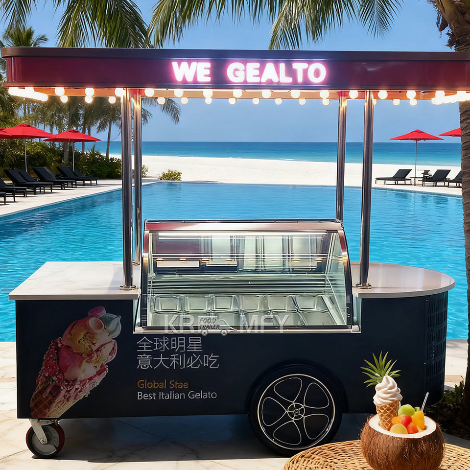 Carrito de Helados con Congelador Móvil y Exhibición de Gelato Estilo 2025