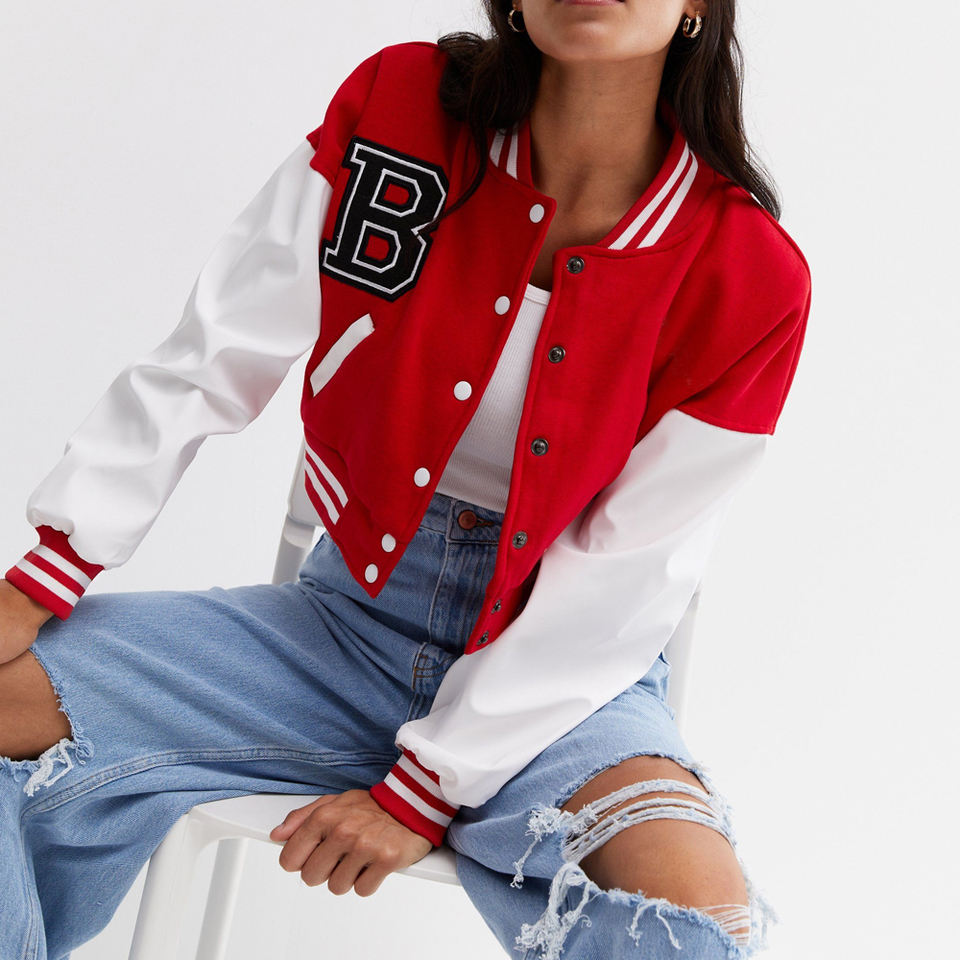 Nombre del producto:Mujer Crop Varsity Chaqueta