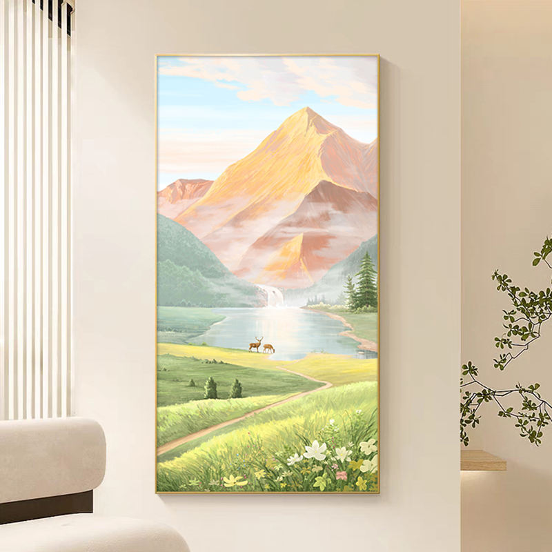 2025 nuevo estilo Rural montaña cristal porcelana pinturas verticales cuatro estaciones paisaje decoración para el hogar estilo de campo